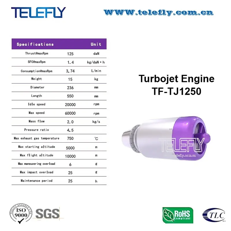 Турбореактивный двигатель TF-TJ1250 компании Telefly — это силовая установка нового поколения, отличающаяся передовыми инженерными решениями, высокой прочностью и превосходными характеристиками. TF-TJ1250, тщательно разработанный в соответствии с мировыми стандартами, выделяется среди аналогов высокой эффективностью, стабильностью и долговременной надежностью. Будучи надежным китайским поставщиком, Telefly предлагает гибкие оптовые варианты, конкурентоспособные цены и мощную послепродажную поддержку этого двигателя.